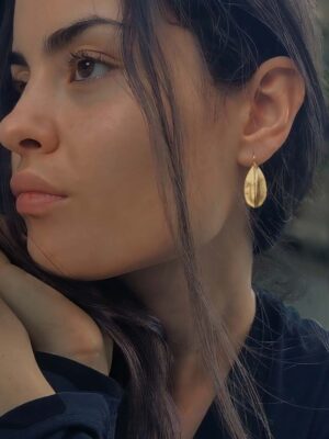 Kreolernes tekstur får mig til at tænke på et korallrevs porøse overflade, eroderet af århundreders bølgeslag. De tætsiddende knopper og uregelmæssige fordybninger skaber et relief, der genskinner som dråber på en grusvej, regnen netop har forladt. Smykket gengiver den uforfalskede skønhed, der findes, når materialer får lov til at tale deres eget sprog. 🕊️ Find kreolerne i butikken og på webshoppen under navnet "Angitia" ✨