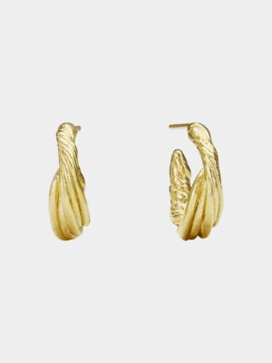 Small minimalist hoops in gold-plated sterling silver. The simplicity of the jewelry leaves room for the rustic surfaces of the hoops to stand out. A pair of well-composed small earrings with a round, soft, and crescent-shaped expression.
